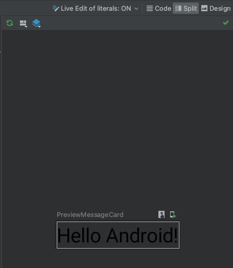 Android Studio에서는 앱 설치를 대신하여 composable functions을 IDE 내부에서 미리볼 수 있는 기능을 제공해줍니다. @Preview 어노테이션을 @Composable 이전에 추가하면 됩니다.