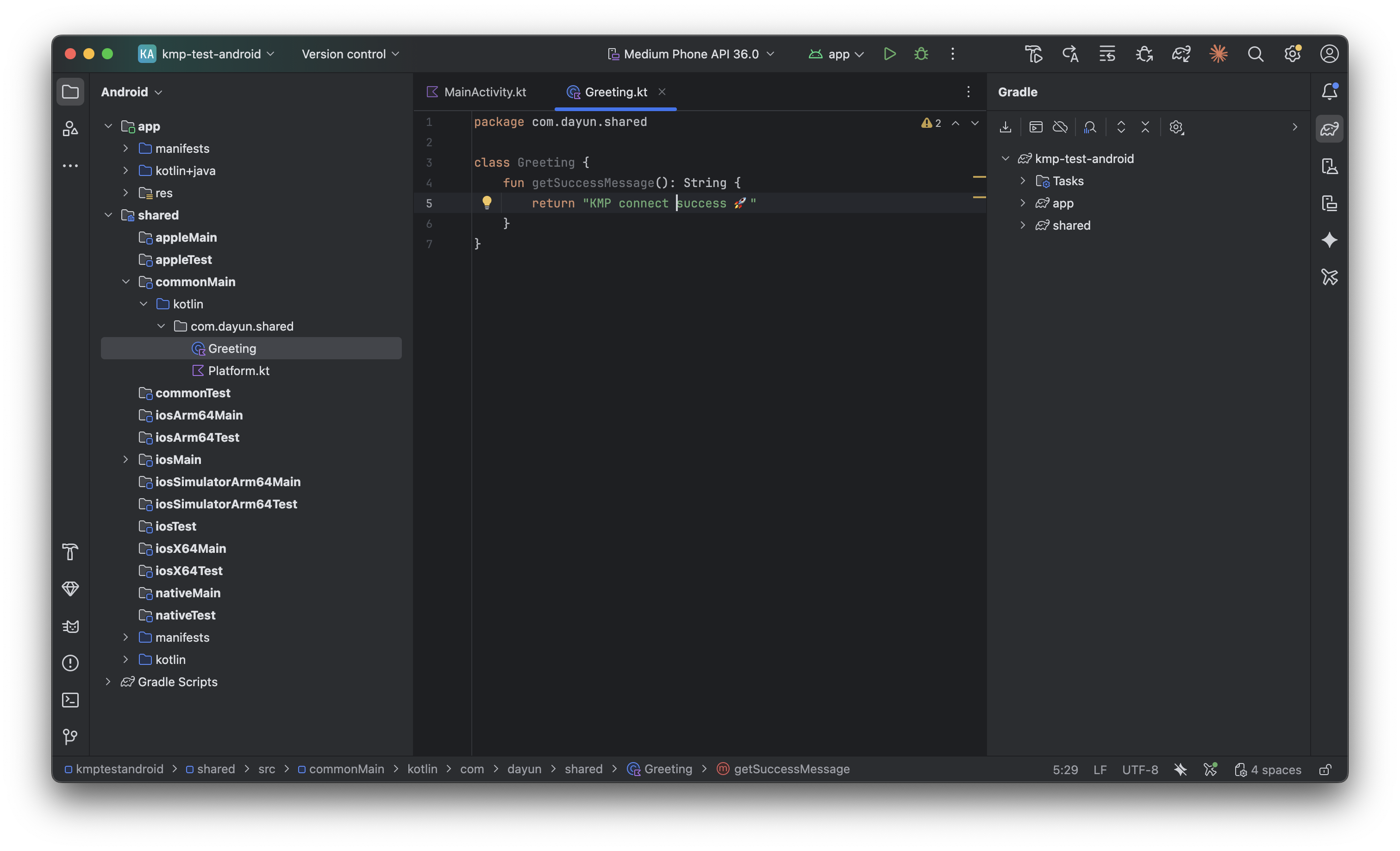 4. shared 모듈 내 commonMain에 테스트용 함수를 추가합니다.
